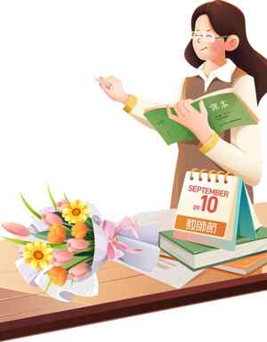 老年人阅读与菊花插画