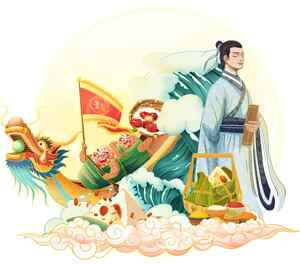 端午节龙舟赛与粽子文化插画