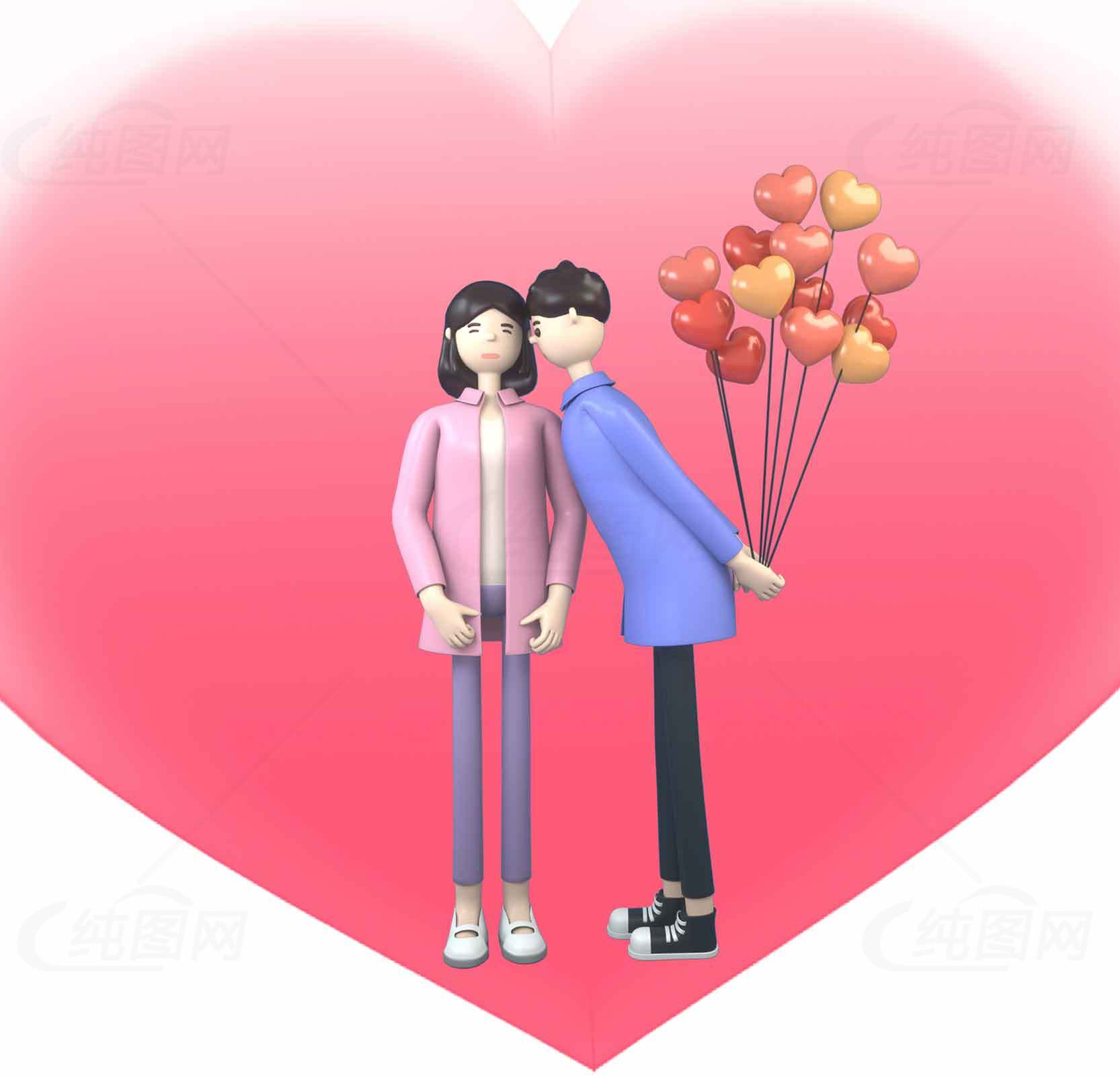 粉色心形礼物图片:浪漫爱情与卡通人物装饰