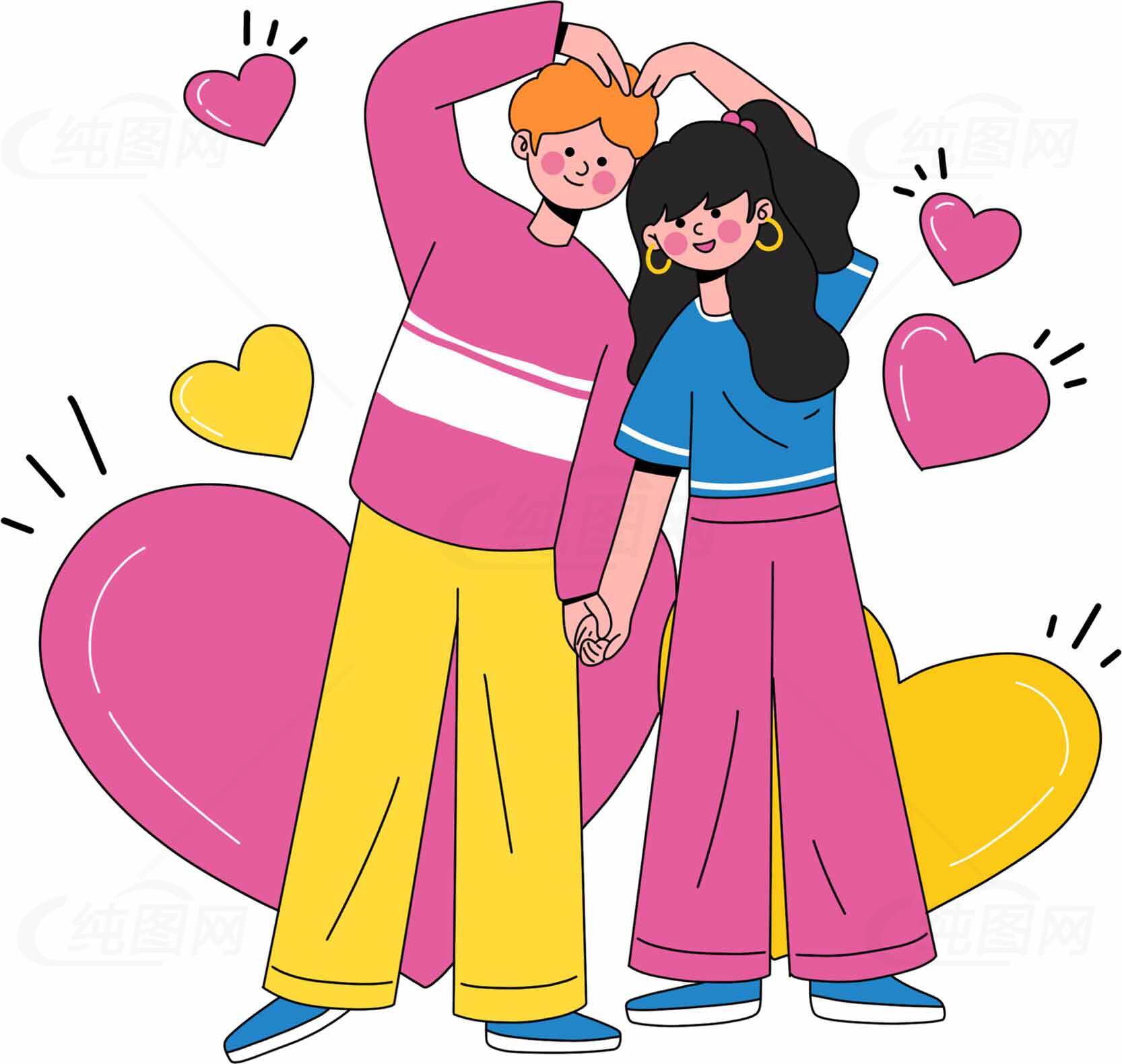 甜蜜情侣插画图片:浪漫粉色心形背景