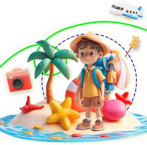热带海滩风情插画:枫叶与夏日阳光的完美结合
