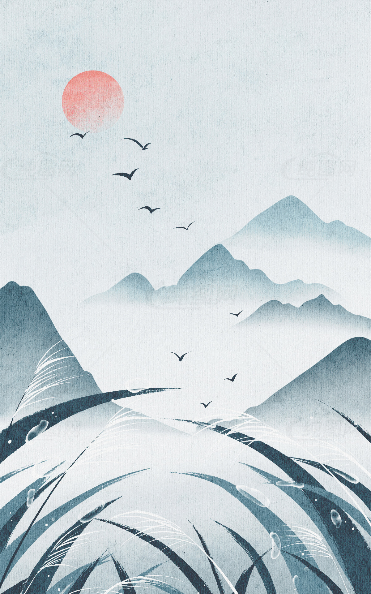 这张作品的主题是:中国水墨山水画:日出与飞鸟,以蓝色为主色调,主体文字图片皆可替换修改,您可能还对艺术作品,风景画,文化遗产,经典艺术,画作,视觉艺术,传统文化,艺术欣赏,山川,画家等内容感兴趣,中国水墨山水画:日出与飞鸟格式为PSD,作品编号:2695,尺寸为1200*1920像素,海报素材大小是59.299M。欢迎会员免费下载。