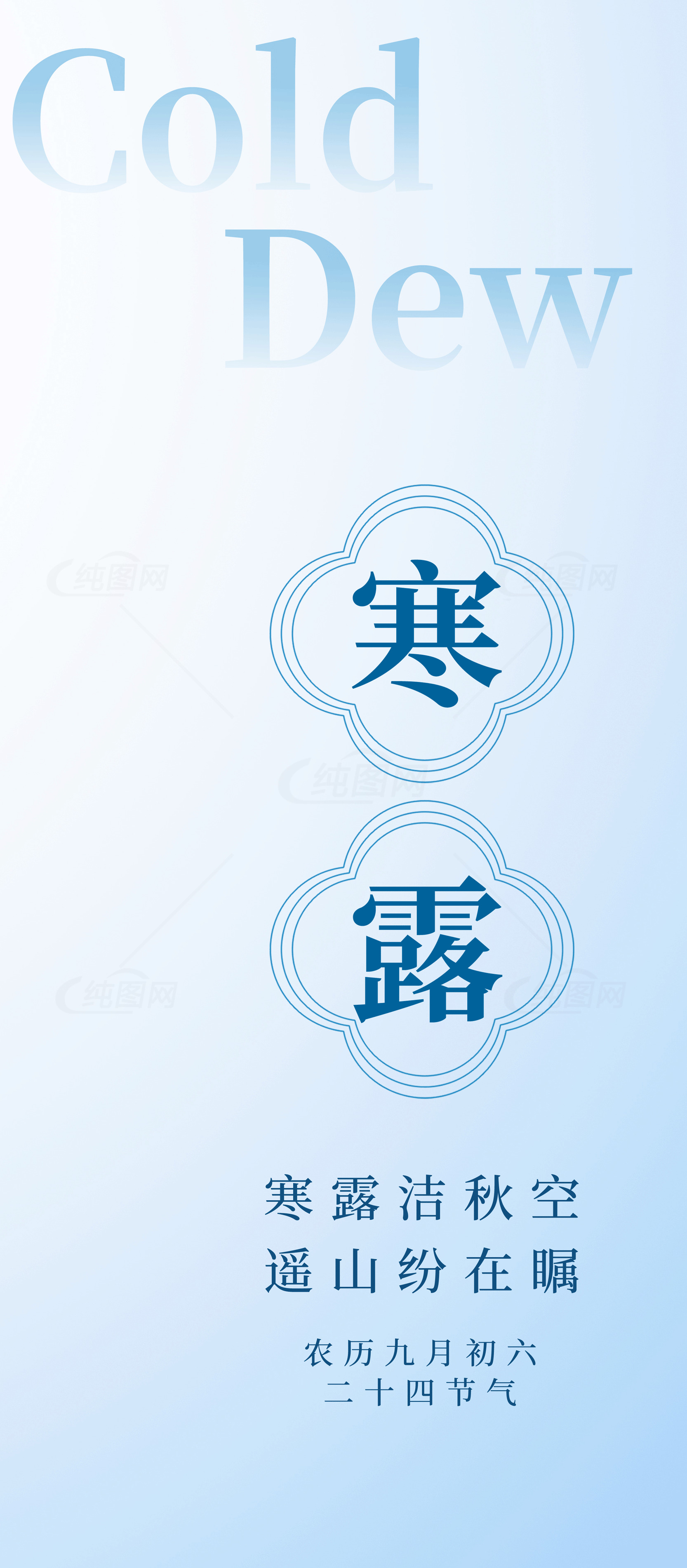 这张作品的主题是:寒露节气海报设计背景,以蓝色为主色调,主体文字图片皆可替换修改,您可能还对简约,蓝色,渐变,文字,中式,现代,自然,气候,视觉,宣传等内容感兴趣,寒露节气海报设计背景格式为PSD,作品编号:2719,尺寸为2245*5125像素,海报素材大小是31.915M。欢迎会员免费下载。