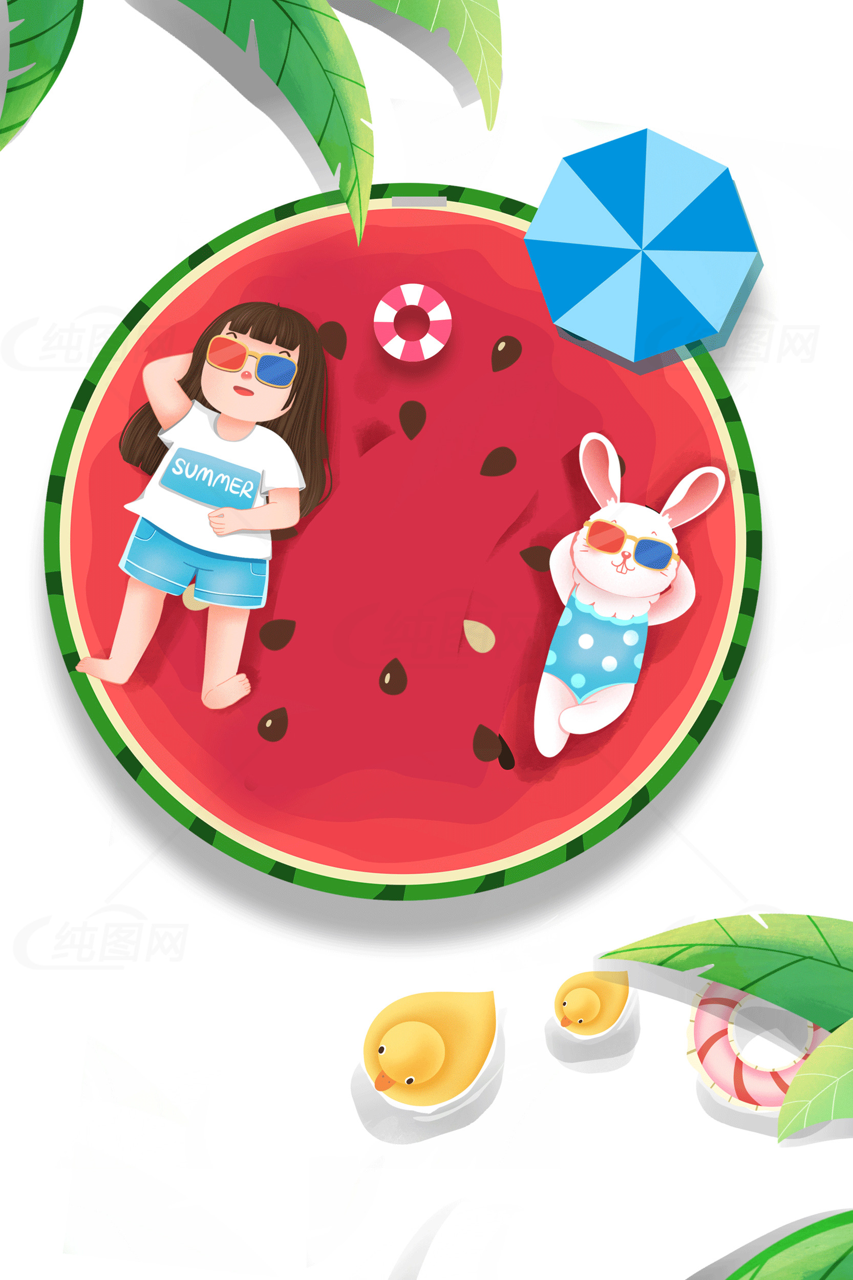 夏日清凉西瓜泳池插画设计