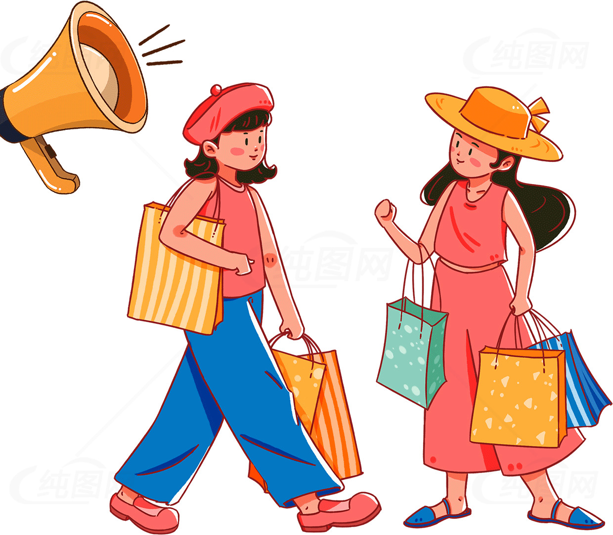 这张作品的主题是:时尚购物插画:两位女性手提购物袋,以橙色为主色调,主体文字图片皆可替换修改,您可能还对生活方式,休闲装,夏季,购物狂欢,购物节,购物中心,购物乐趣,购物体验,购物活动,购物插画等内容感兴趣,时尚购物插画:两位女性手提购物袋格式为PSD,作品编号:7724,尺寸为1240*1084像素,海报素材大小是3.748M。欢迎会员免费下载。