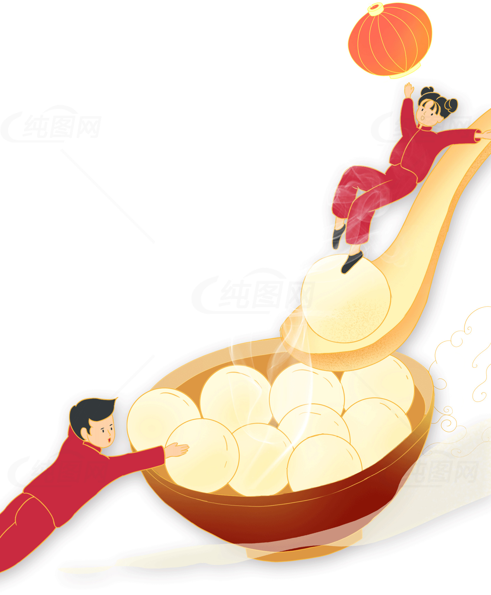 元宵节传统习俗与汤圆美食插画
