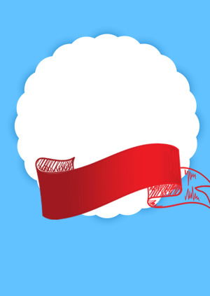 蓝色背景红色丝带装饰的白色圆形标签图片