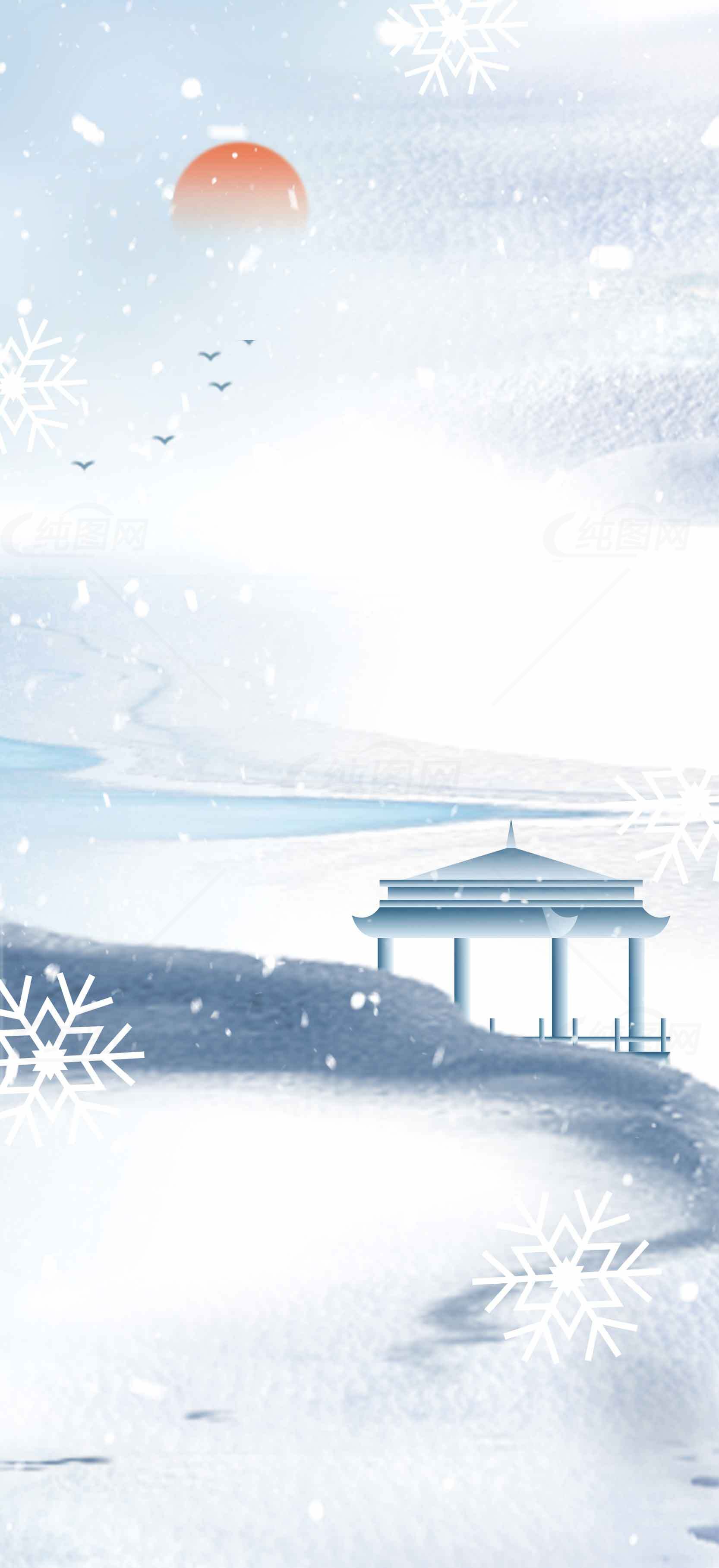 这张作品的主题是:冬日雪景中国风插画背景图片,以蓝白色为主色调,主体文字图片皆可替换修改,您可能还对冬季背景,红日,冬日湖景,雪地,冬季艺术,冬日美景,冬季装饰,冬日风光,冬季设计,冬日氛围等内容感兴趣,冬日雪景中国风插画背景图片格式为PSD,作品编号:9708,尺寸为1949*4252像素,海报素材大小是93.862M。欢迎会员免费下载。