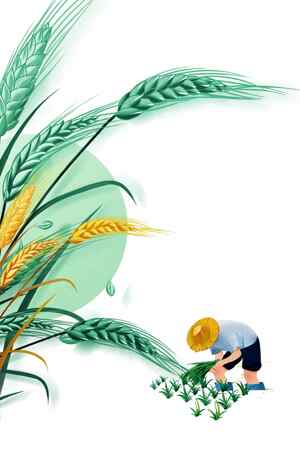 农民插秧插画-田间劳作与绿色麦田