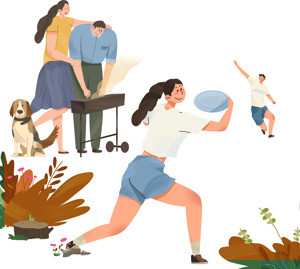 卡通风格的旅行插画:载满欢乐的卡车与自然元素