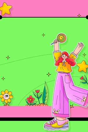 女孩与草地上的童趣时光插画