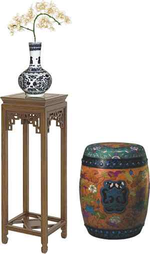 中式古典风格装饰艺术:红伞与花瓶椅子搭配